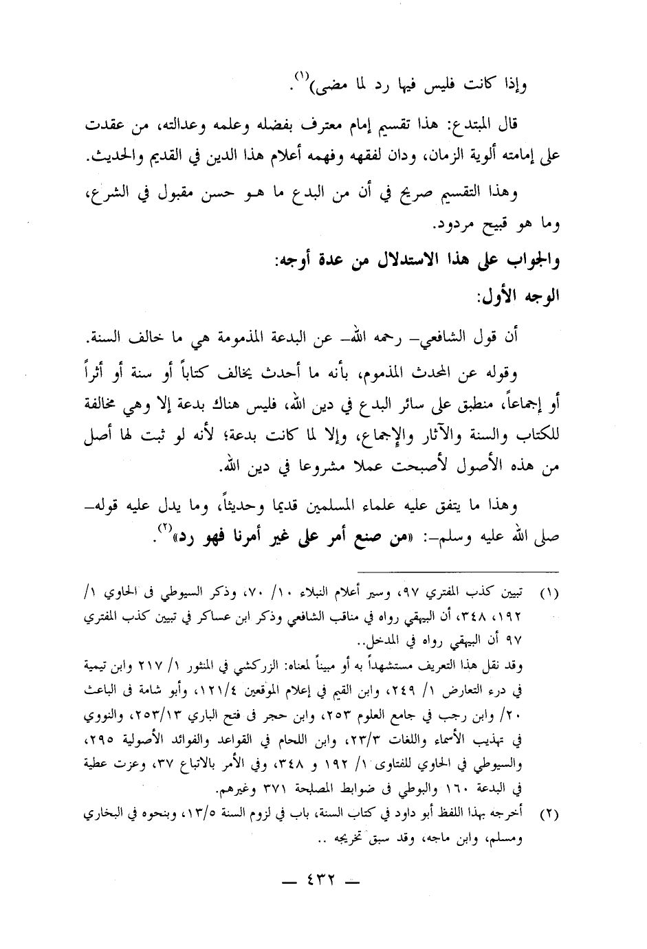 قال المبتدع: هذا تقسيم إمام معترف بفضله وعلمه وعدالته، من عقدت على إمامته ألوية الزمان، ودان لفقهه وفهمه أعلام هذا الدين في القديم والحديث.