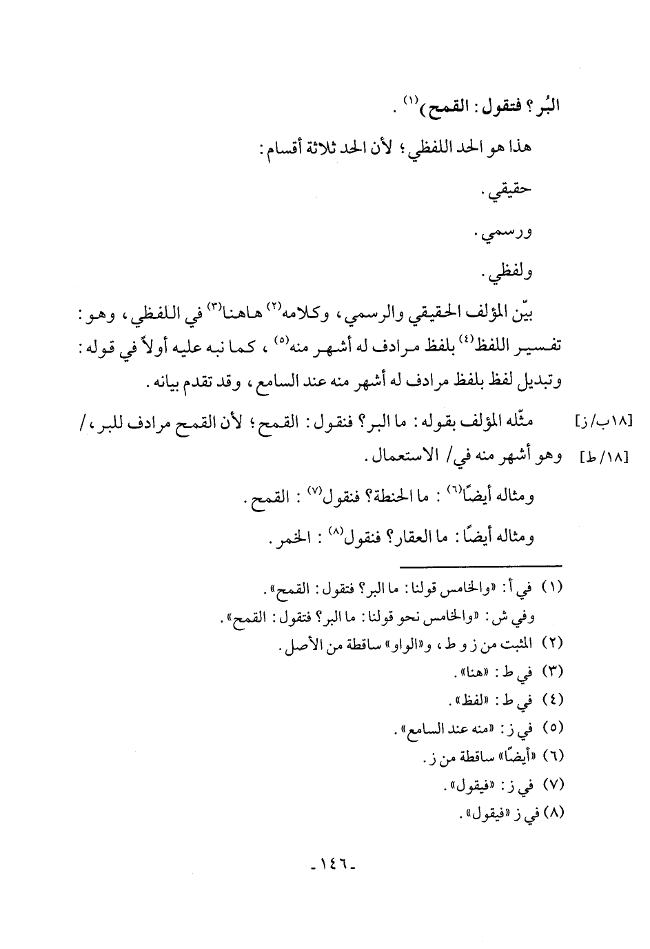 ومثاله أيضًا (٦): ما الحنطة؟ فنقول (٧): القمح.