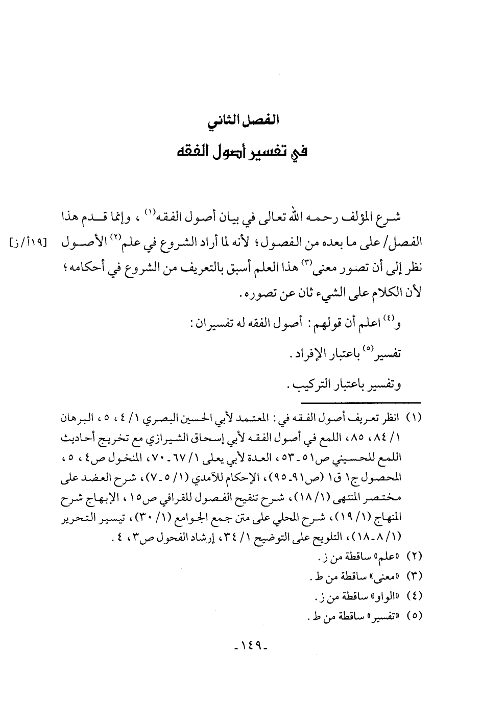 (١) انظر تعريف أصول الفقه في: المعتمد لأبي الحسين البصري ١/ ٤، ٥، البرهان ١/ ٨٤، ٨٥، اللمع في أصول الفقه لأبي إسحاق الشيرازي مع تخريج أحاديث اللمع للحسيني ص ٥١ - ٥٣، العدة لأبي يعلى ١/ ٦٧ - ٧٠، المنخول ص ٤، ٥، المحصول ج ١ ق ١ (ص ٩١ - ٩٥)، الإحكام للآمدي (١/ ٥ - ٧)، شرح العضد على مختصر المنتهى (١/ ١٨)، شرح تنقيح الفصول للقرافي ص ١٥، الإبهاج شرح المنهاج (١/ ١٩)، شرح المحلي على متن جمع الجوامع (١/ ٣٠)، تيسير التحرير (١/ ٨ - ١٨)، التلويح على التوضيح ١/ ٣٤، إرشاد الفحول ص ٣، ٤.