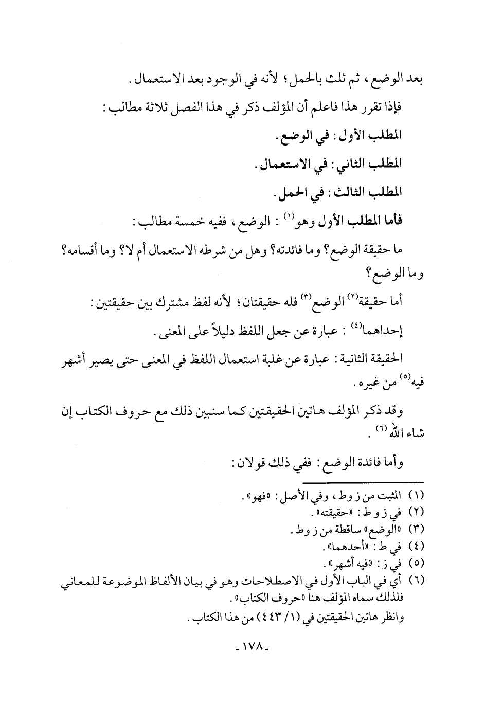 (٦) أي في الباب الأول في الاصطلاحات وهو في بيان الألفاظ الموضوعة للمعاني فلذلك سماه المؤلف هنا "حروف الكتاب".