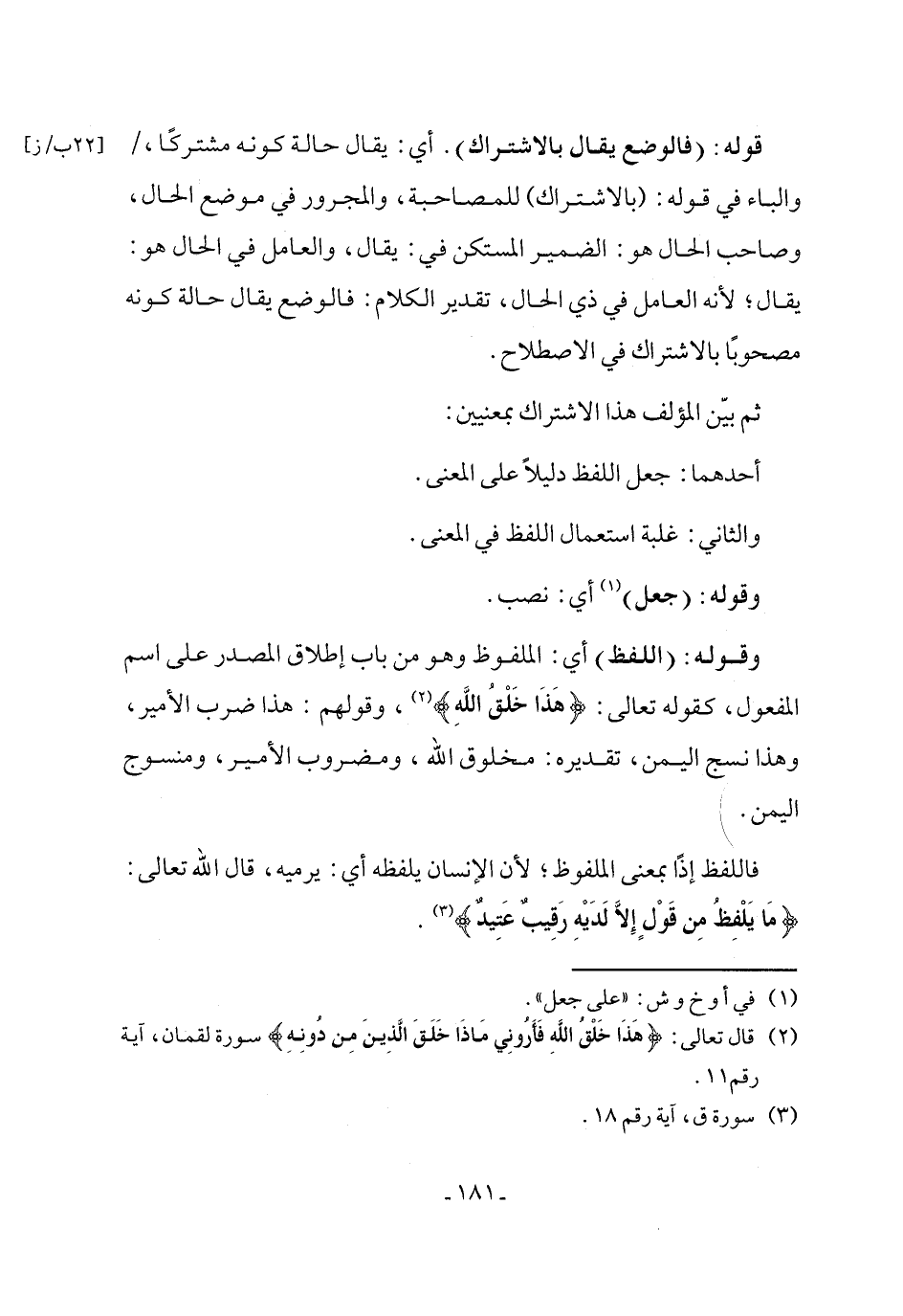 ثم بيّن المؤلف هذا الاشتراك بمعنيين: