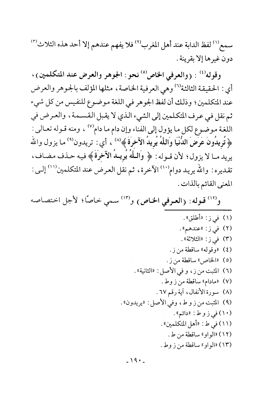 و (١٢) قوله: (العرفي الخاص) و (١٣) سمي خاصًا؛ لأجل اختصاصه