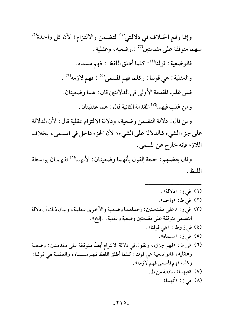 وإنما وقع الخلاف في دلالتي (١) التضمن والالتزام؛ لأن كل واحدة (٢) منهما متوقفة على مقدمتين (٣): وضعية، وعقلية.