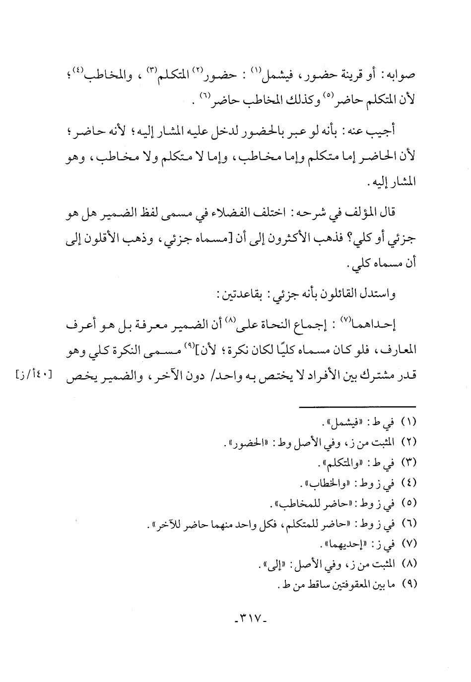 (٦) في ز وط: "حاضر للمتكلم، فكل واحد منهما حاضر للآخر".