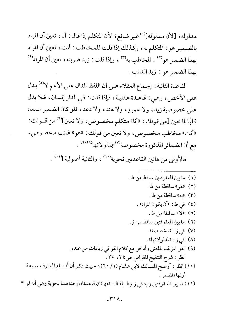 (٩) نقل المؤلف بالمعنى وأدخل مع كلام القرافي زيادات من عنده.