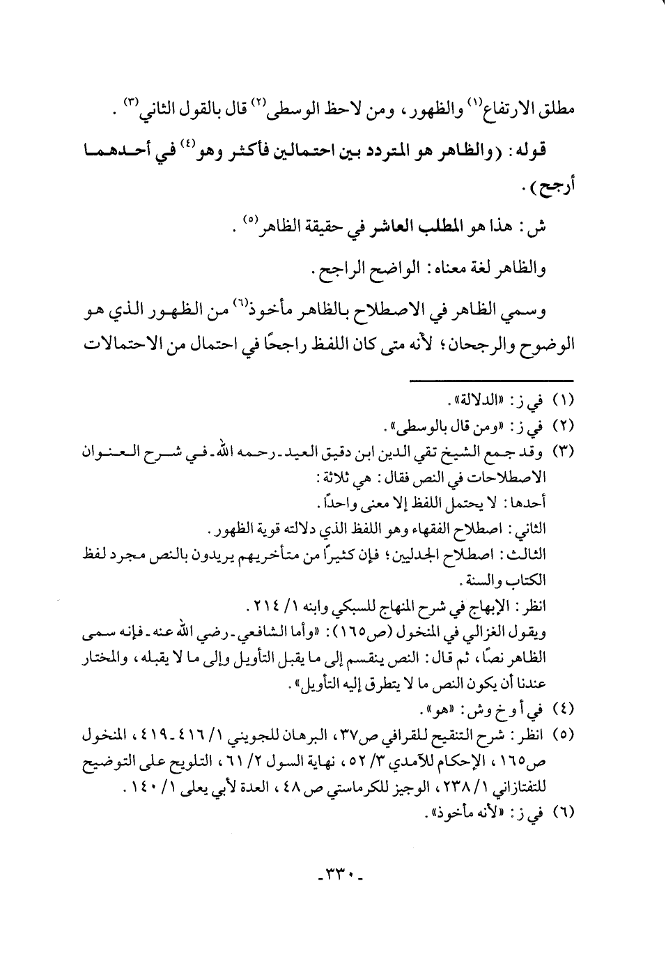 ش: هذا هو المطلب العاشر في حقيقة الظاهر (٥).
