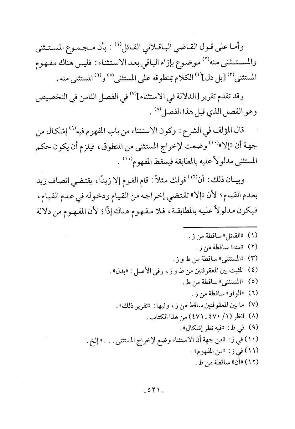 وقد تقدم تقرير [الدلالة في الاستثناء] (٧) في الفصل الثامن في التخصيص وهو الفصل الذي قبل هذا الفصل (٨).