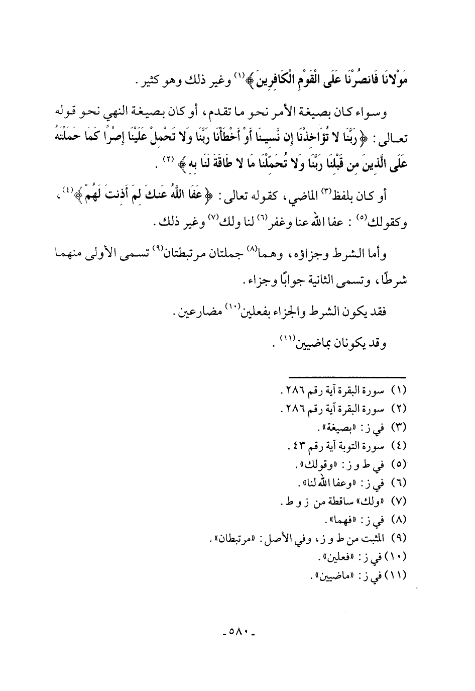 وأما الشرط وجزاؤه، وهما (٨) جملتان مرتبطتان (٩) تسمى الأولى منهما شرطًا، وتسمى الثانية جوابًا وجزاء.