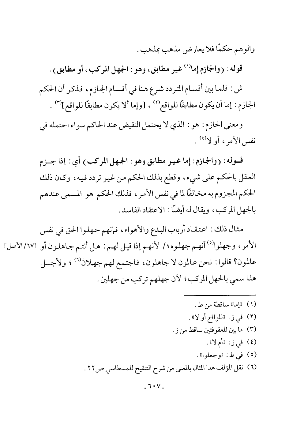 قوله: (والجازم إِما (١) غير مطابق، وهو: الجهل المركب، أو مطابق).