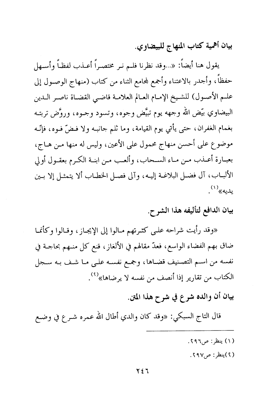 بيان أهمية كتاب المنهاج للبيضاوي.