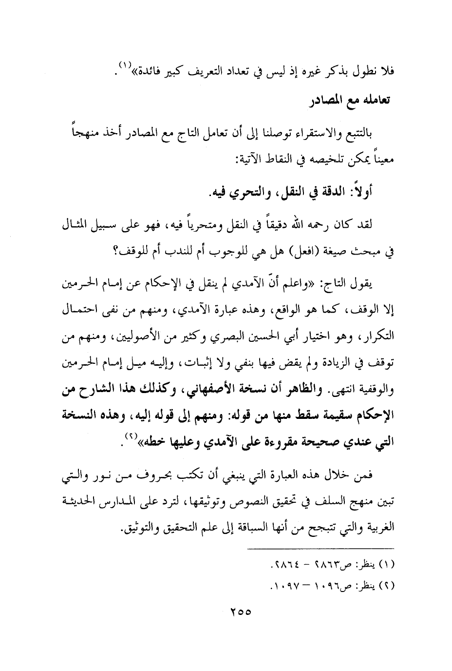 بالتتبع والاستقراء توصلنا إلى أن تعامل التاج مع المصادر أخذ منهجًا معينًا يمكن تلخيصه في النقاط الآتية: