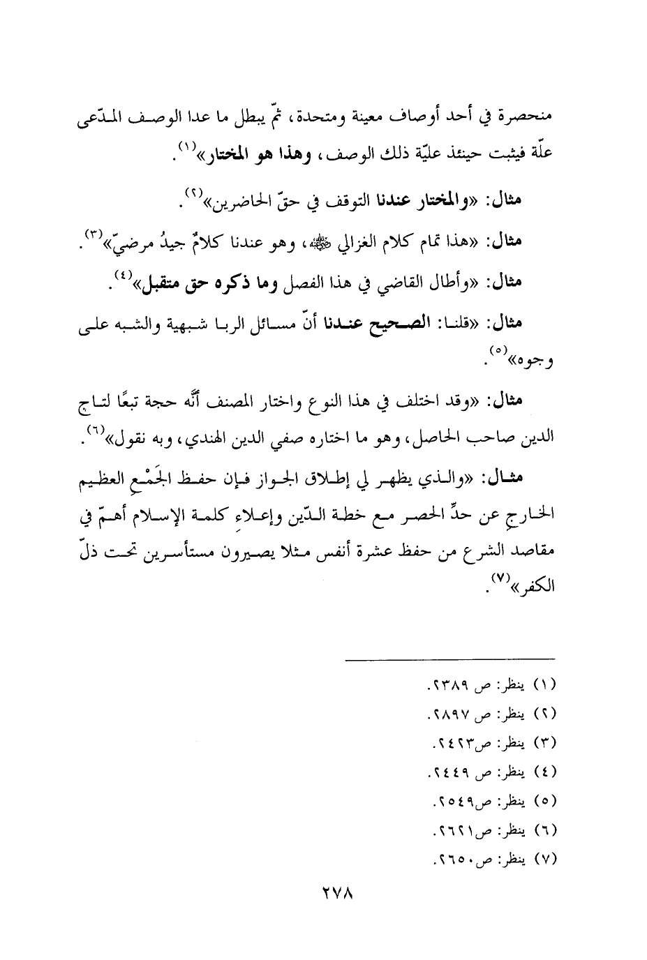 مثال: "وقد اختلف في هذا النوع واختار المصنف أنَّه حجة تبعًا لتاج الدين صاحب الحاصل، وهو ما اختاره صفي الدين الهندي، وبه نقول" (¬٦).