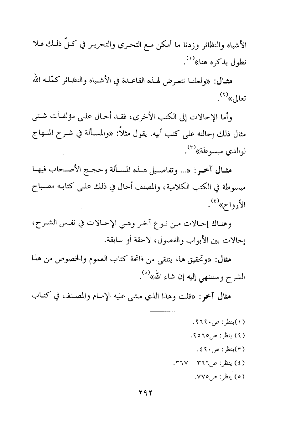 وهناك إحالات من نوع آخر وهي الإحالات في نفس الشرح، إحالات بين الأبواب والفصول، لاحقة أو سابقة.
