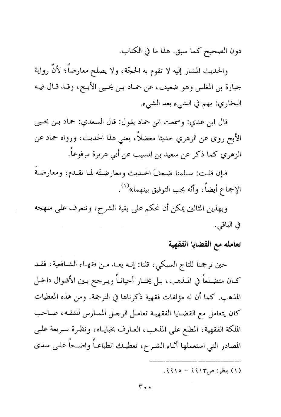 حين ترجمنا للتاج السبكي، قلنا: إنه يعد من فقهاء الشافعية، فقد كالن متضلعًا في المذهب، بل يختار أحيانًا ويرجح بين الأقوال داخل المذهب. كما أن له مؤلفات فقهية ذكرناها في الترجمة. ومن هذه المعطيات كان يتعامل مع القضايا الفقهية تعامل الرجل الممارس للفقه، صاحب الملكة الفقهية، المطلع على المذهب، العارف بخباياه، ونظرة سريعة على المصادر التي استعملها أثناء الشرح، تعطيك انطباعًا واضحًا على مدى