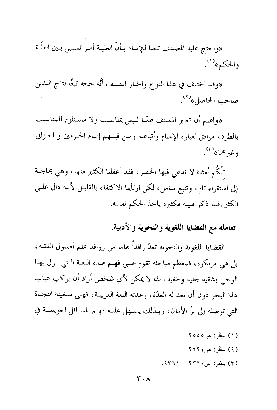 تعامله مع القضايا اللغوية والنحوية والأدبية.
