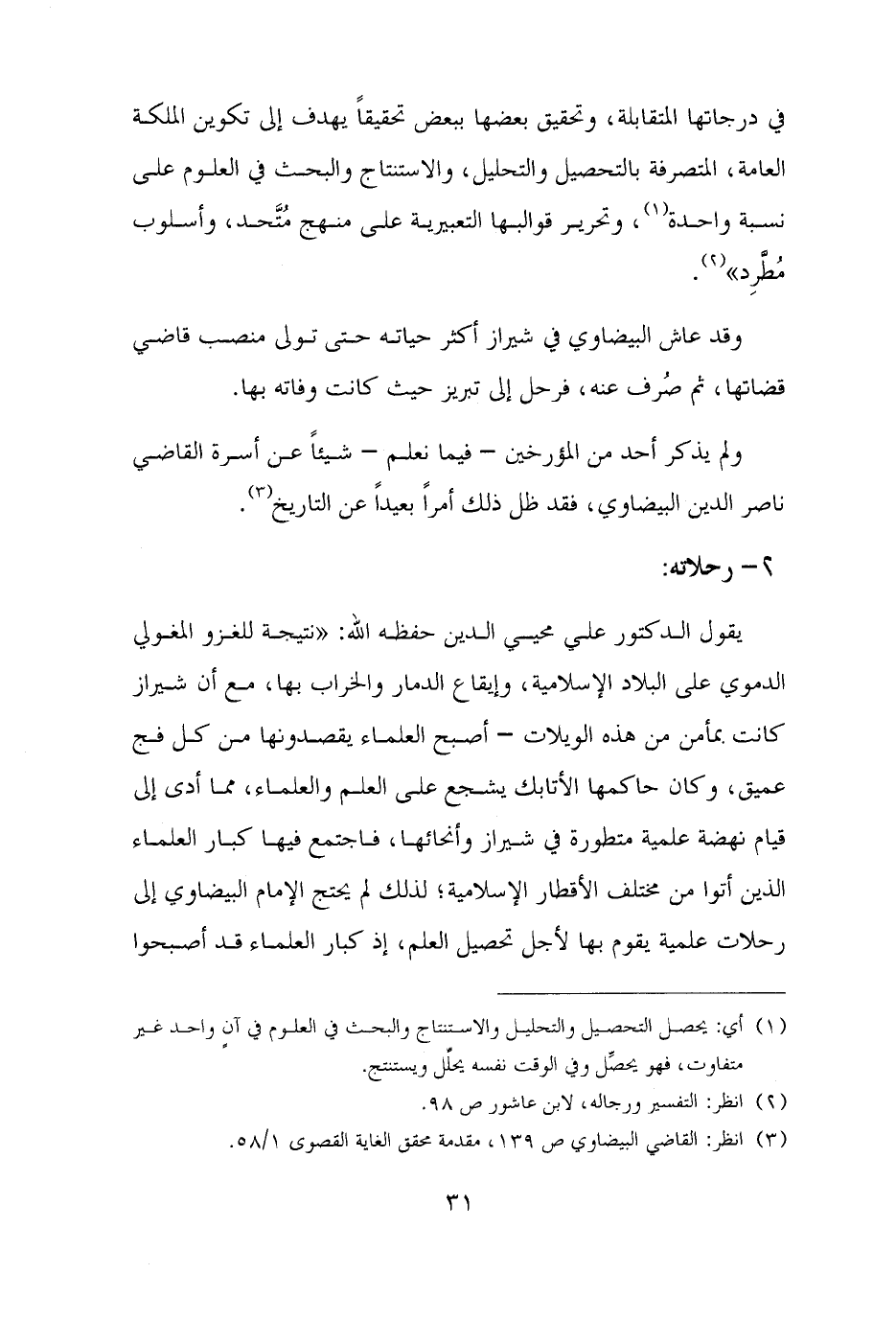 (¬٣) انظر: القاضي البيضاوي ص ١٣٩، مقدمة محقق الغاية القصوى ١/ ٥٨.