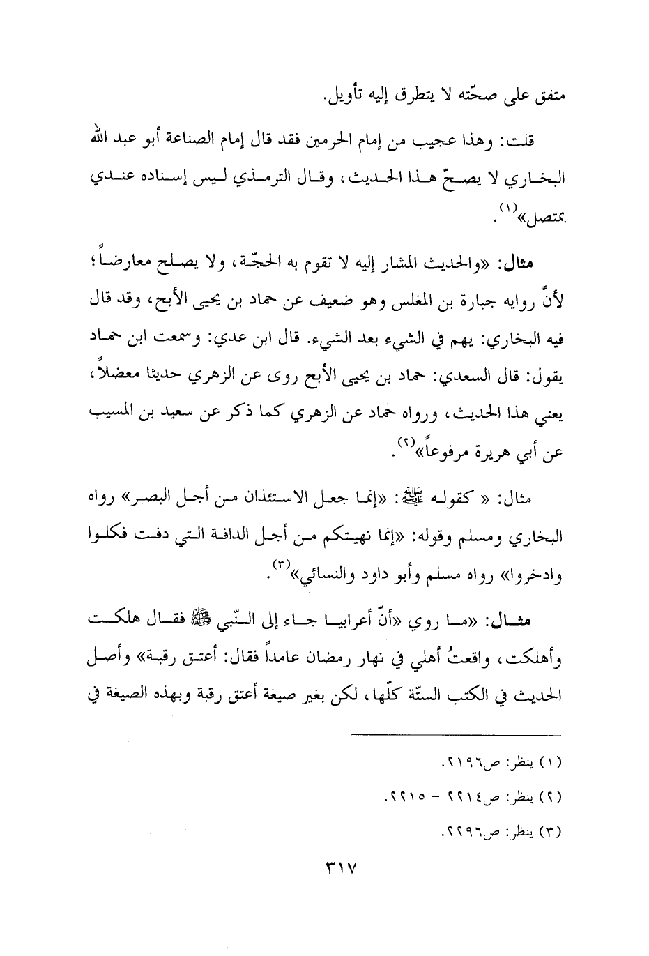 مثال: "ما روي "أنّ أعرابيا جاء إلى النّبي - صلى الله عليه وسلم - فقال هلكت وأهلكت، واقعتُ أهلي في نهار رمضان عامدًا فقال: أعتق رقبة" وأصل الحديث في الكتب الستّة كلّها، لكن بغير صيغة أعتق رقبة وبهذه الصيغة في