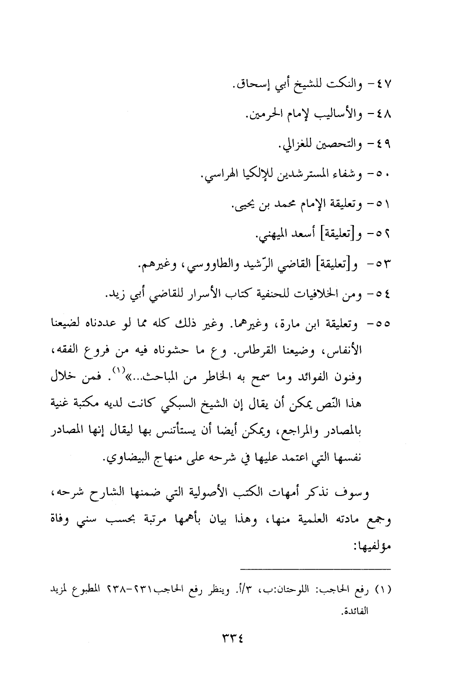 (¬١) رفع الحاجب: اللوحتان: ب، ٣/ أ. وينظر رفع الحاجب ٢٣١ - ٢٣٨ المطبوع لمزيد الفائدة.