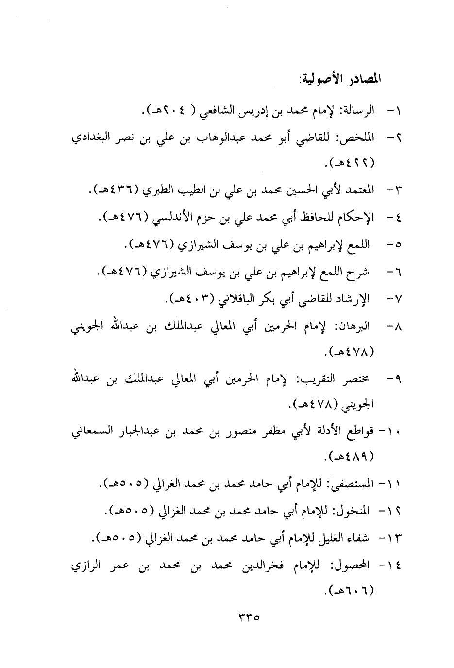 ٨ - البرهان: لإمام الحرمين أبي المعالي عبد الملك بن عبد الله الجويني (٤٧٨ هـ).