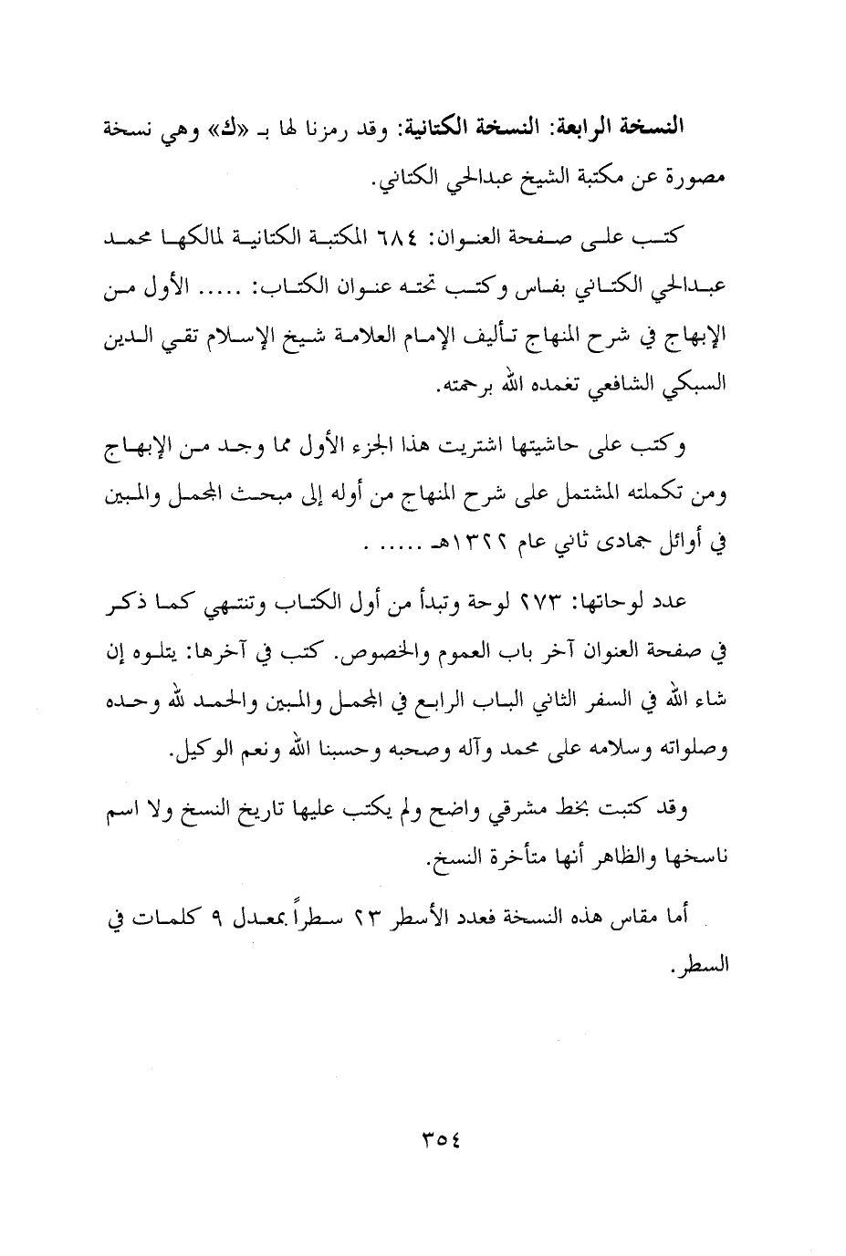 النسخة الرابعة: النسخة الكتانية: وقد رمزنا لها بـ "ك" وهي نسخة مصورة عن مكتبة الشيخ عبد الحي الكتاني.