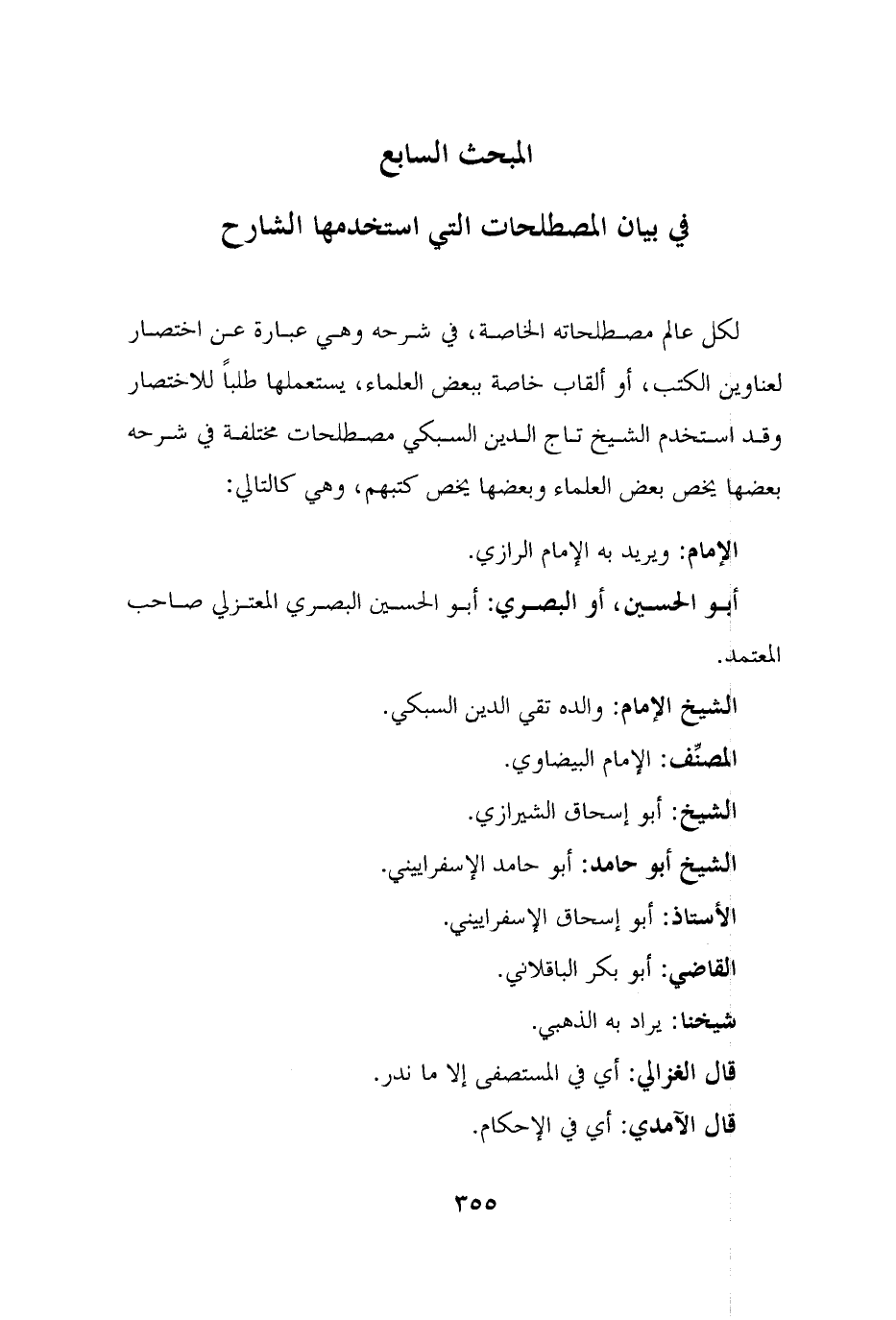 المبحث السابع: في بيان المصطلحات التي استخدمها الشارح