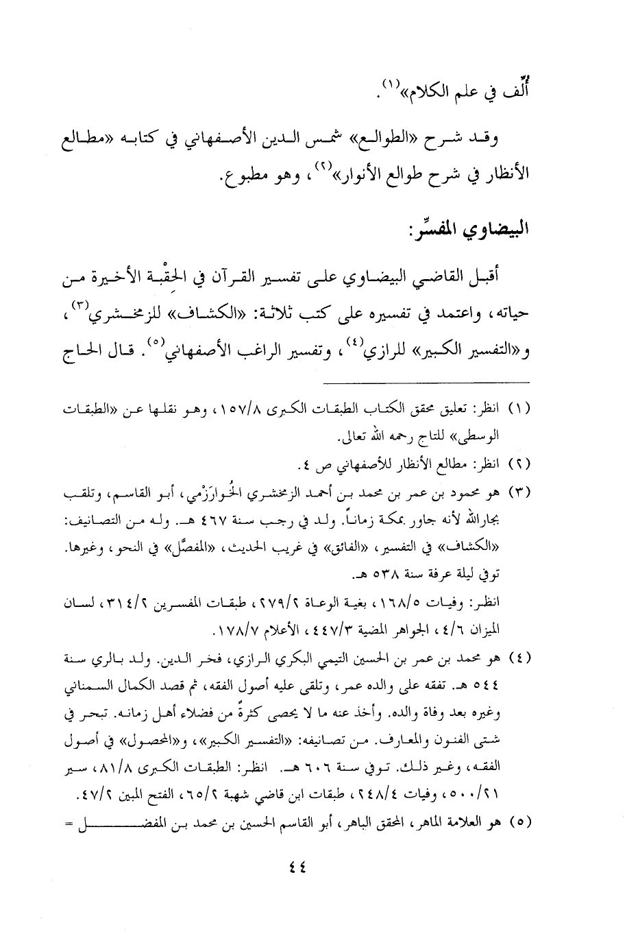 (¬٢) انظر: مطالع الأنظار للأصفهاني ص ٤.