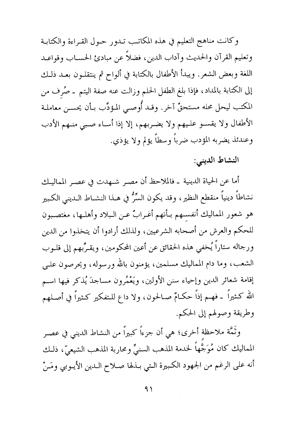 وثَمَّة ملاحظةٍ أخرى؛ هي أن جزءًا كبيرًا من النشاط الديني في عصر المماليك كان مُوَجَّهًا لخدمة المذهب السنيِّ ومحاربة المذهب الشيعيّ، ذلك أنه على الرغم من الجهود الكبيرة التي بذلها صلاح الدين الأيوبي ومَنْ
