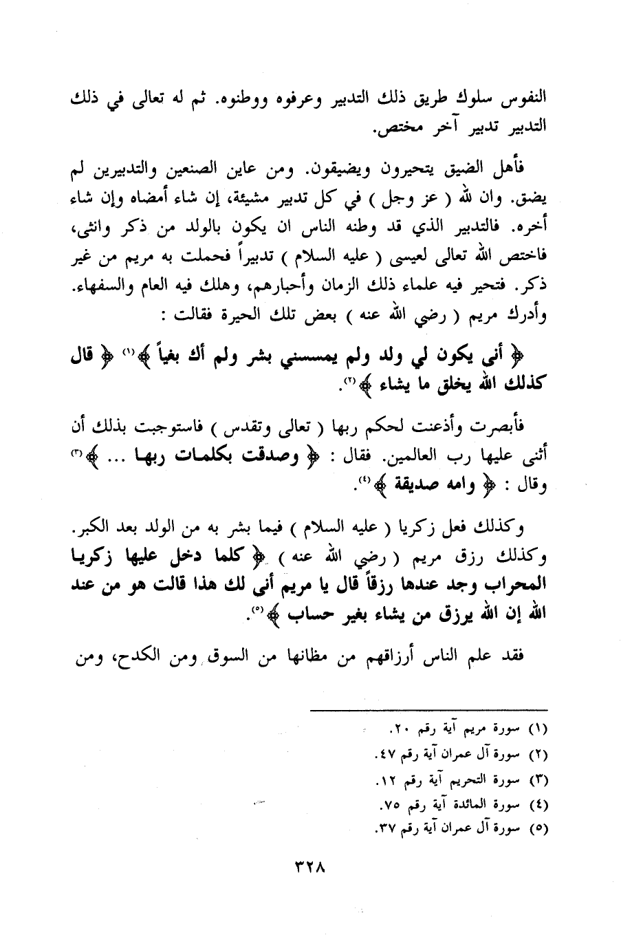 وَكَذَلِكَ فعل زَكَرِيَّا عَلَيْهِ السَّلَام فِيمَا بشر بِهِ من الْوَلَد بعد الْكبر وَكَذَلِكَ رزق مَرْيَم رَضِي الله عَنهُ {كلما دخل عَلَيْهَا زَكَرِيَّا الْمِحْرَاب وجد عِنْدهَا رزقا قَالَ يَا مَرْيَم أَنى لَك هَذَا قَالَت هُوَ من عِنْد الله إِن الله يرْزق من يَشَاء بِغَيْر حِسَاب}