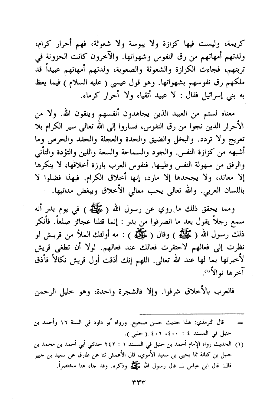 فالعرب بالأخلاق شرفوا وَإِلَّا فالشجرة وَاحِدَة وَهُوَ خَلِيل الرَّحْمَن
