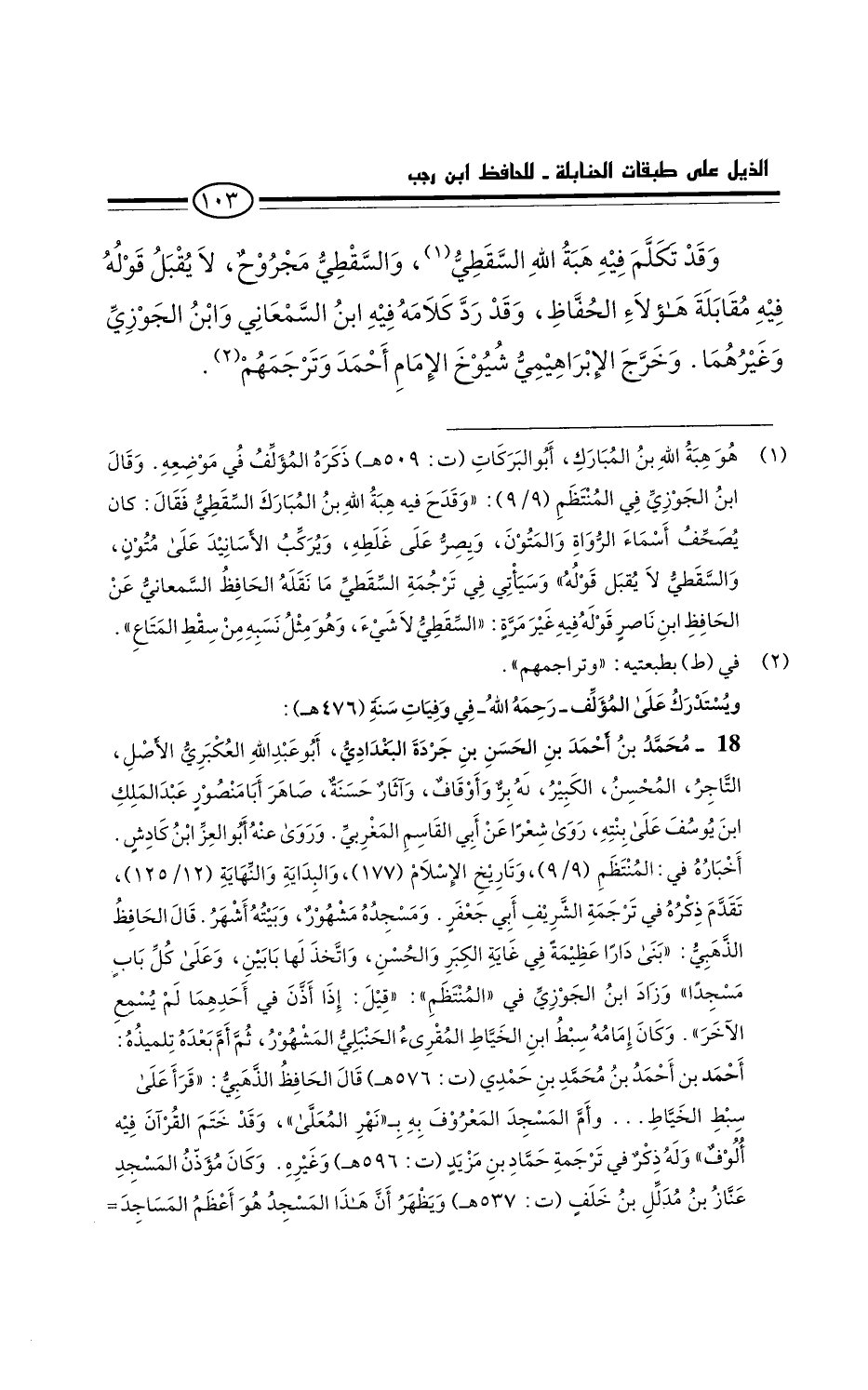 كتاب ذيل طبقات الحنابلة - لابن رجب - ت العثيمين (اسم الجزء: 1)