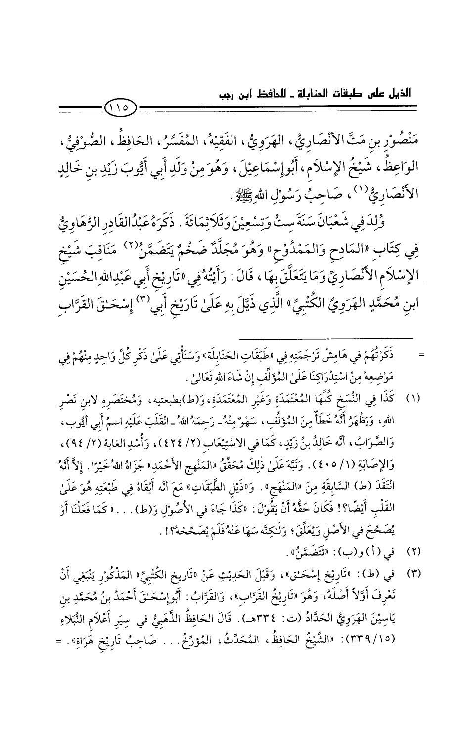 الهروي، الفقيه المفسر الحافظ، الصوفي الواعظ، شيخ الإسلام أَبُو إسماعيل: وهو من ولد أبي أيوب زيد بن خالد الأنصاري، صاحب رَسُول اللَّهِ صَلَّى اللَّهُ عَلَيْهِ وَسَلَّمَ: ولد في شعبان سنة ست وتسعين وثلاثمائة.