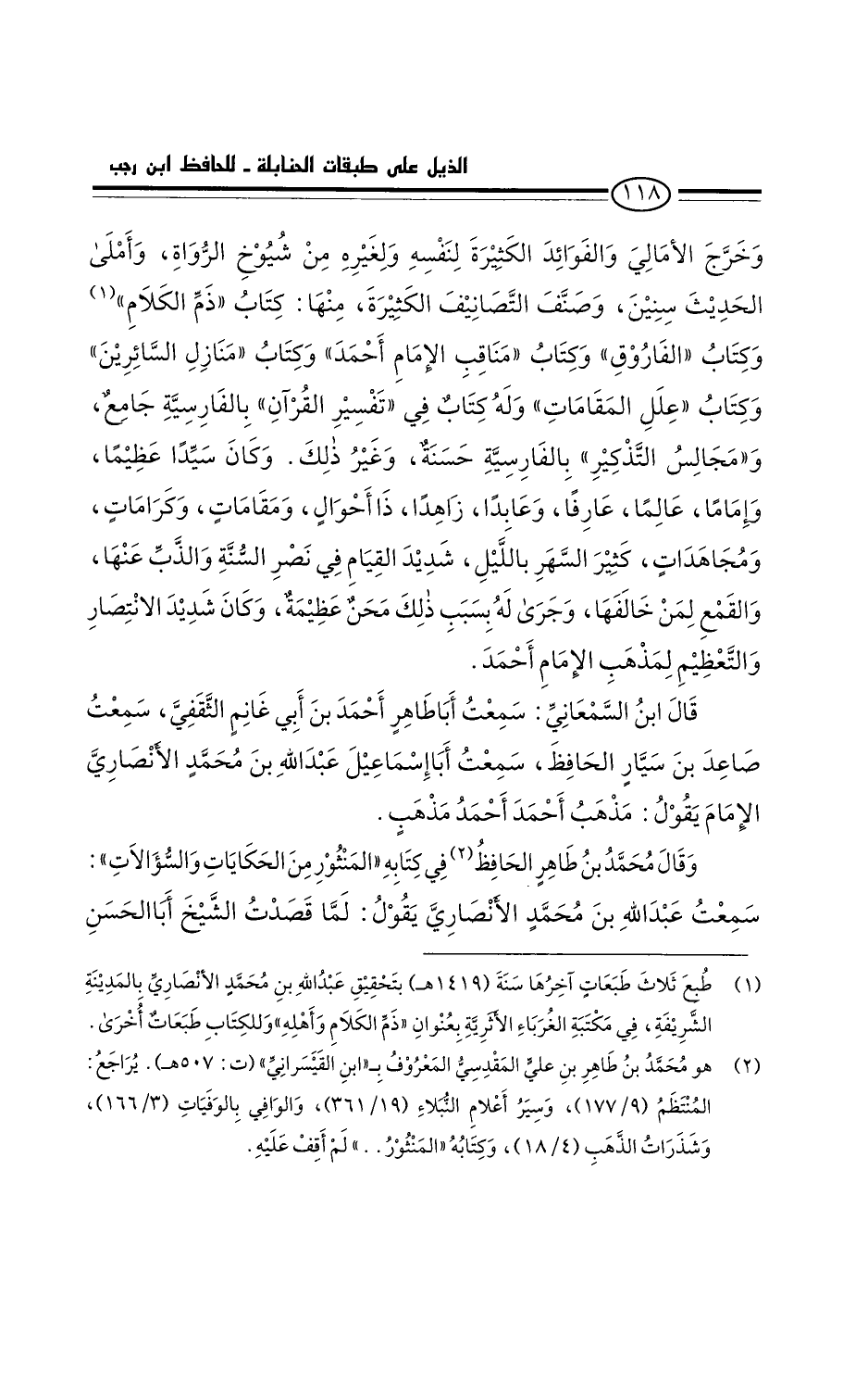 وكان سيدا عظيما، وإماما عالما عارفا، وعابدا زاهدا، ذا أحوال ومقامات وكرامات ومجاهدات، كثير السهر بالليل، شديد القيام في نصر السنة والذب عنها والقمع لمن خالفها. وجرى له بسبب ذلك محن عظيمةْ. وكان شديد الانتصار والتعظيم لمذهب الإمام أحمد.