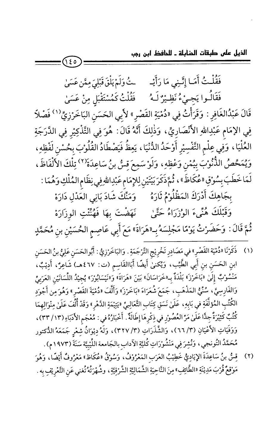 ثم ذكر بيتين للإمام عبد الله في نظام الملك، وهما: