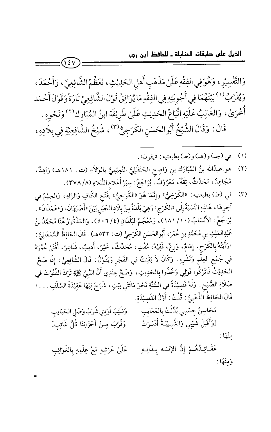 قال: وقال الشيخ أَبُو الحسن الكرخي، شيخ الشافعية في بلاده،