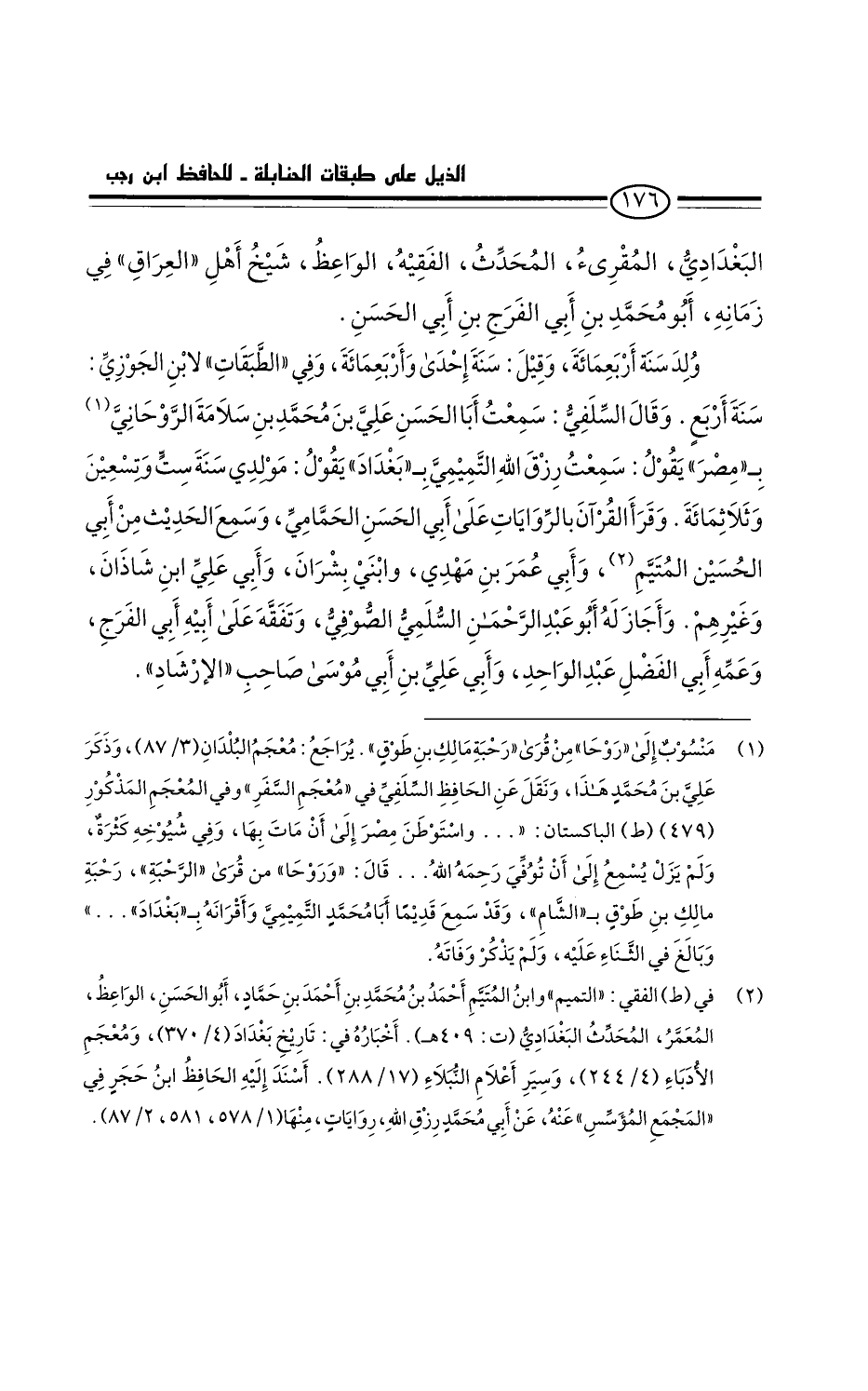 البغدادي المقرىء، المحدث الفقيه الواعظ، شيخ أهل العراق في زمانه، أَبُو محمد بن أبي الفرج بن أبي الحسن: ولد سنة أربعمائة - وقيل: سنة إحدى وأربعمائة - وفي الطبقات لابن الجوزي: سنة أربع.