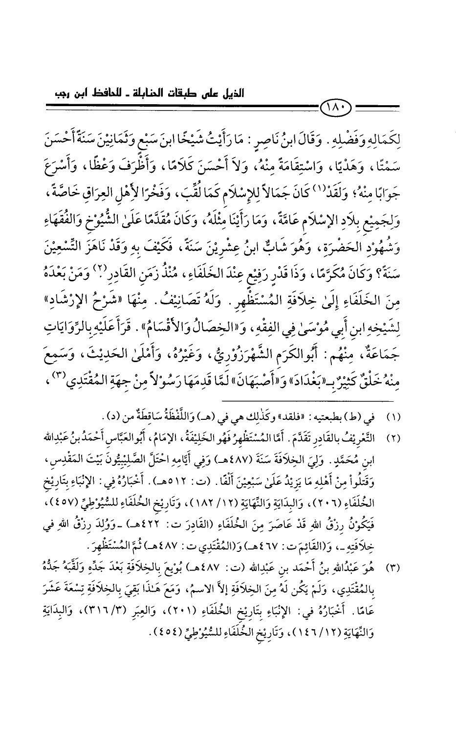 وقال ابن ناصر ما رأيتُ شيخا ابن سبع وثمانين سنة أحسن سمتا وهديا، واستقامة منه، ولا أحسن كلاما، وأظرف وعظا، وأسرع جوابا منه فلقد كان جمالا للإسلام كما لقب، وفخرا لأهل العراق خاصة، ولجميع بلاد الإسلام عامة، وما رأينا مثله. كان مقدما على الشيوخ الفقهاء وشهود الحضرة، وهو شاب ابن عشرين سنة، فكيف به وقد ناهز التسعين سنة. وكان مكرما وذا قدر رفيع عند الخلفاء، منذ زمن القادر ومَنْ بعده من الخلفاء إلى خلافة المستظهر.