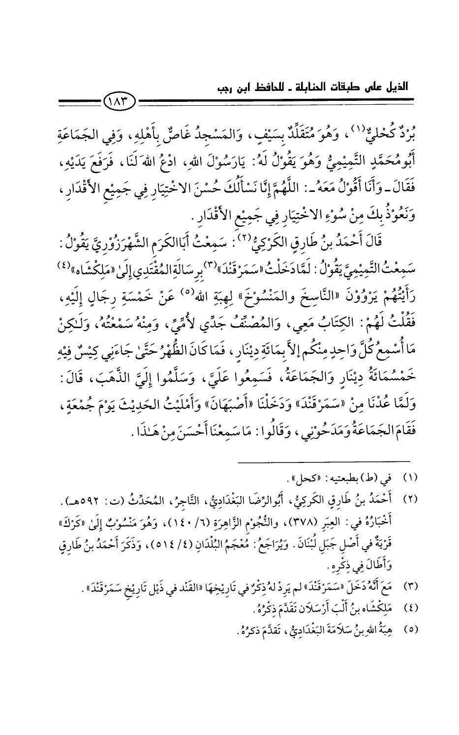 قال أحمد بن طارق الكركي: سمعتُ أبا الكرم الشهرزوري يقول: سمعتُ التميمي يقول: لما دخلتُ سمرقند برسالة المقتدي إلى " ملكشاه " رأيتهم يروون الناسخ والمنسوخ لهبة الله عن خمسة رجال إليه، فقلت لهم: الكتابُ معي، والمصنِّفُ جدي لأمي، ومنه سمعتُه، ولكنْ ما أُسمع كل واحد منكم إلا بمائة دينار. فما كان الظهر حتى جاءني كيس فيه خمسمائة دينار والجماعة فسمعوا عليَّ، وسلموا إليَّ الذهب. قَالَ: ولما عدنا من سمرقند ودخلنا أصبهان، وأمليتُ الحديث يوم جمعة، فقام الجماعة ومدحوني، وقالوا: ما سمعنا أحسن من هذا.