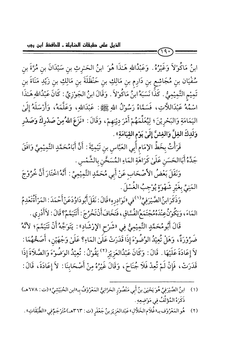 قرأتُ بخط الإمام أبي العباس بن تيمية: أن أبا محمد التميمي وافق جده أبا الحسن على كراهة الماء المسخن بالشمس.