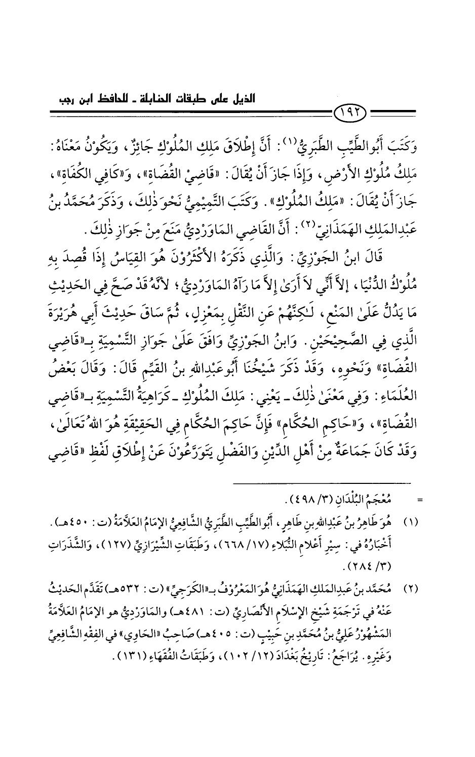 وكتب أَبُو الطيب الطبري: أن إطلاق ملك الملوك جائز، ويكون معناه ملك ملوك الأرض. وإذا جاز أن يُقال: قاضي القضاة، وكافي الكفاة، جاز أن يُقال: ملك الملوك. وكتب التميمي نحو ذلك وذكر محمد بن عبد الملك الهمذاني: أن القاضي الماوردي مَنع من جواز ذلك.