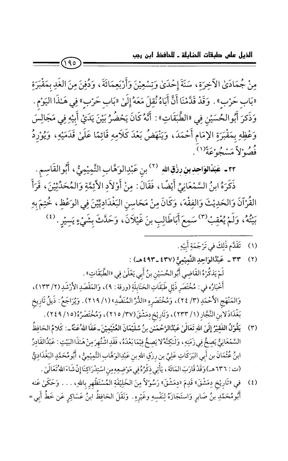 عبد الواحد بن رزق الله بن عبد الوهاب التميمي، أَبُو القاسم، أخو المذكور قبله: ذكره ابن السمعاني أيضا، فقال: من أولاد الأئمة والمحدثين، قرأ القرآن والحديث والفقه. وكان من محاسن البغداديين في الوعظ. ختم به بيته، ولم يعقب.