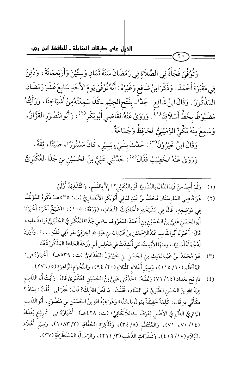 وتوفي فجأة في الصلاة في رمضان سنة ثمان وستين وأربعمائة، ودفن في مقبرة أحمد.