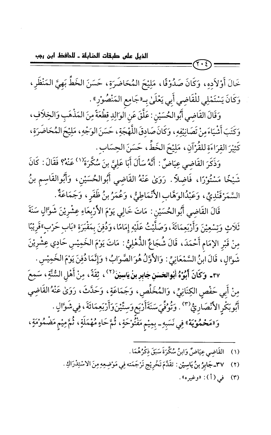 خال أولاده. وكان صدوقا، مليح المحاضرة، حسن الخط، بهي المنظر. وكان يستملي للقاضي أبي يعلى بجامع المنصور.