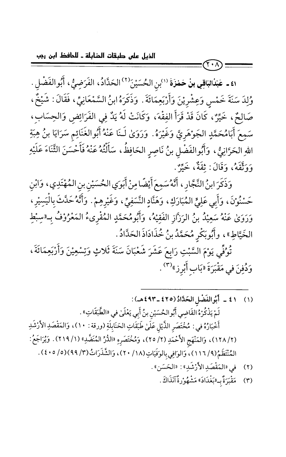 عبد الباقي بن حمزة بن الحسين الحداد، الفرضي، أَبُو الفضل: