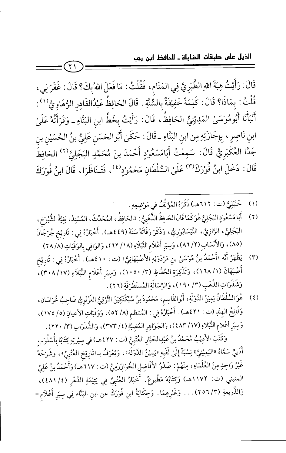 قال: رأيتُ هبة الله الطبري في المنام، فقلت: ما فعل الله بك. قَالَ: غفر لي. قلت: بماذا. قَالَ: كلمة خفيفة: بالسنة.