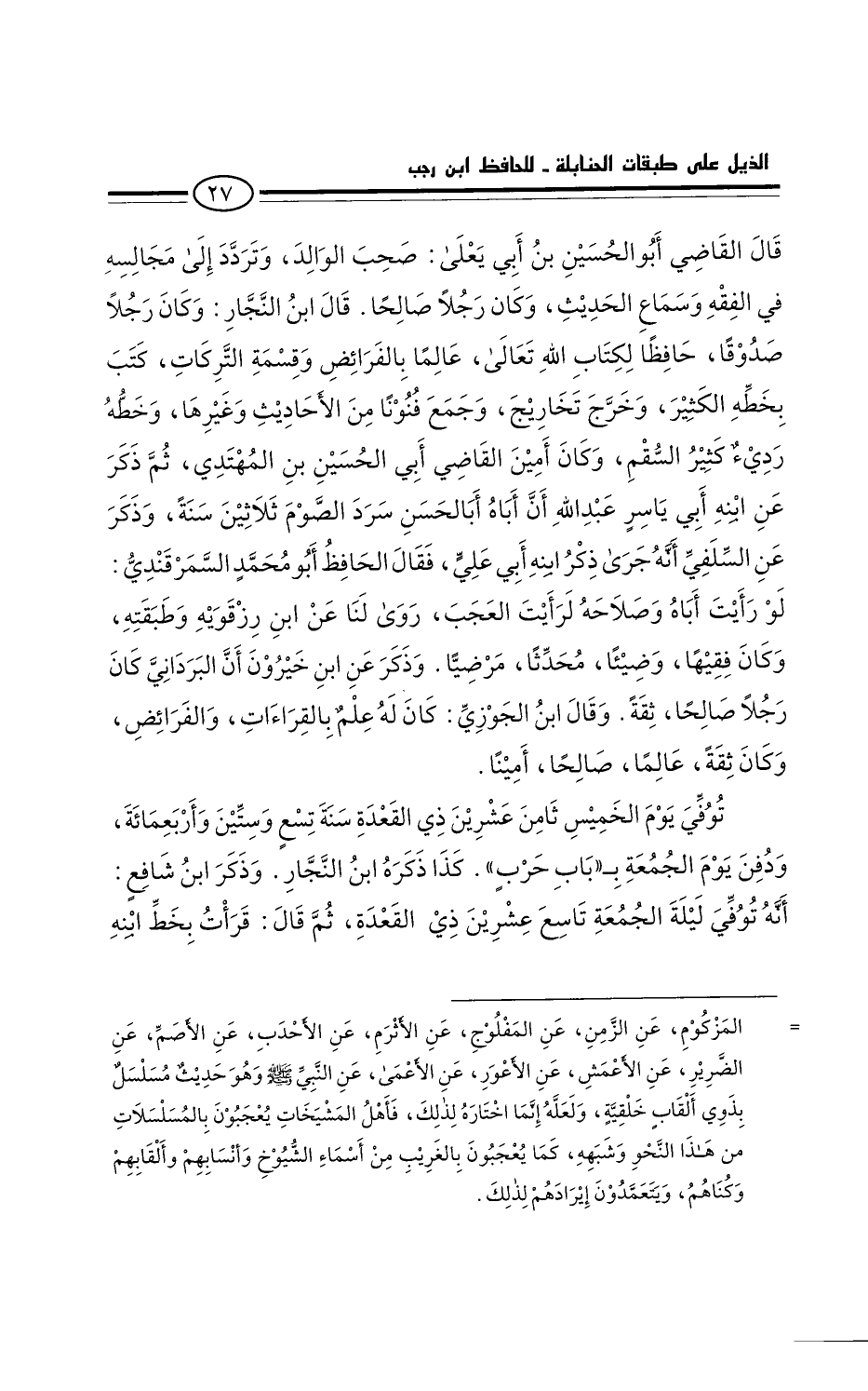 قال القاضي أَبُو الحسين بن أبي يعلى: صحب الوالد، وتردد إلى مجالسه في الفقه وسماع الحديث، وكان رجلا صالحا.