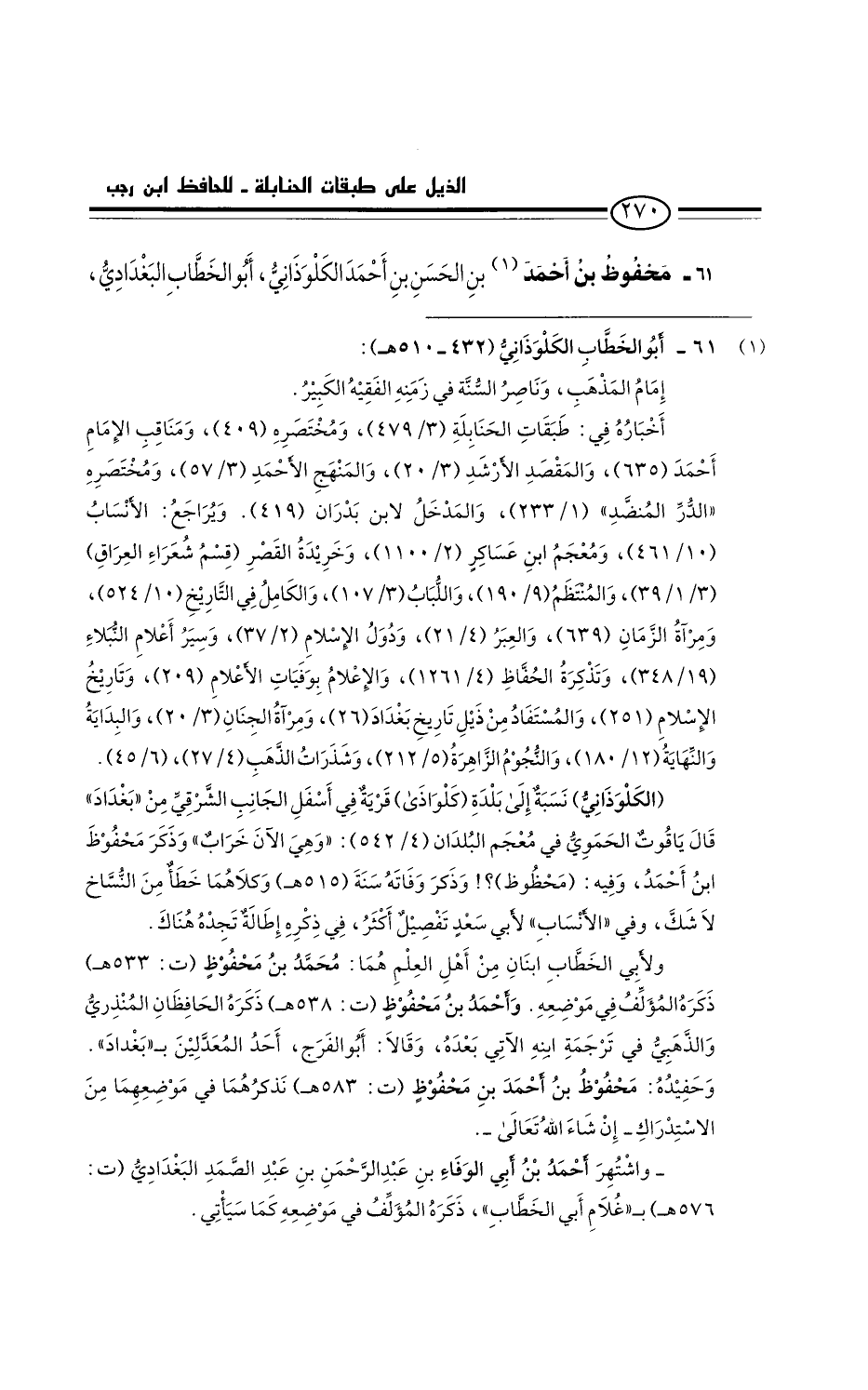 كتاب ذيل طبقات الحنابلة - لابن رجب - ت العثيمين (اسم الجزء: 1)