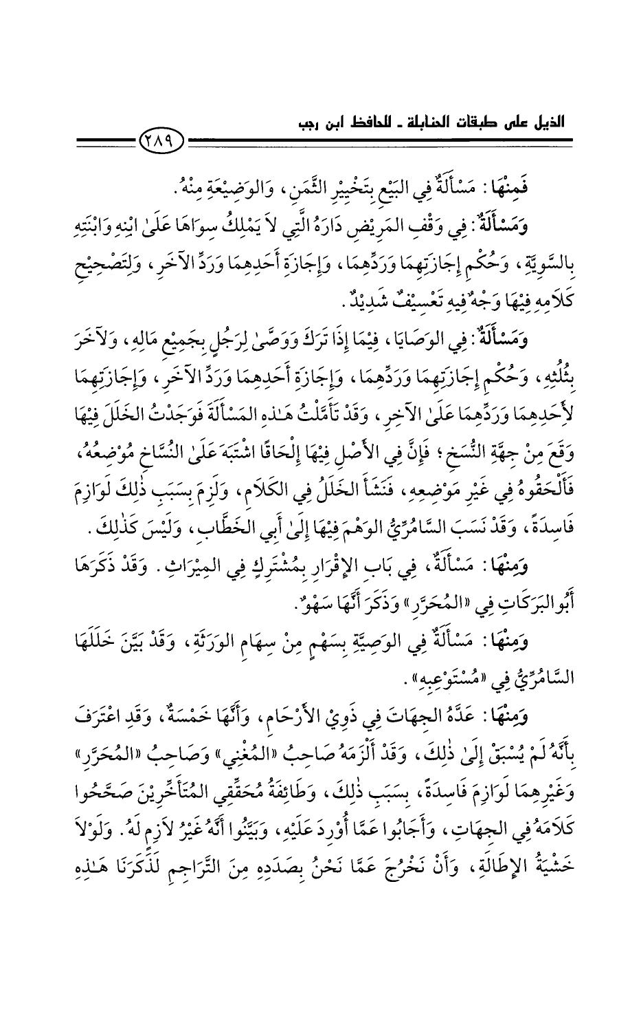 ومنها: مسألة في الوصية بسهمِ من سهام الورثة. وقد بين خَللها السامري في مستوعبه.