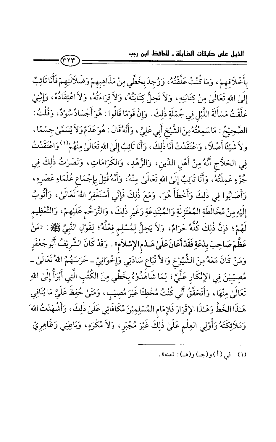 بأخلاقهم. وما كنت علقته، ووُجد بخَطّي من مذاهبهم وضلالتهم فأنا تائب إلى الله تعالى من كتابته. ولا تَحل كتابته، ولا قراءته، ولا اعتقاده.