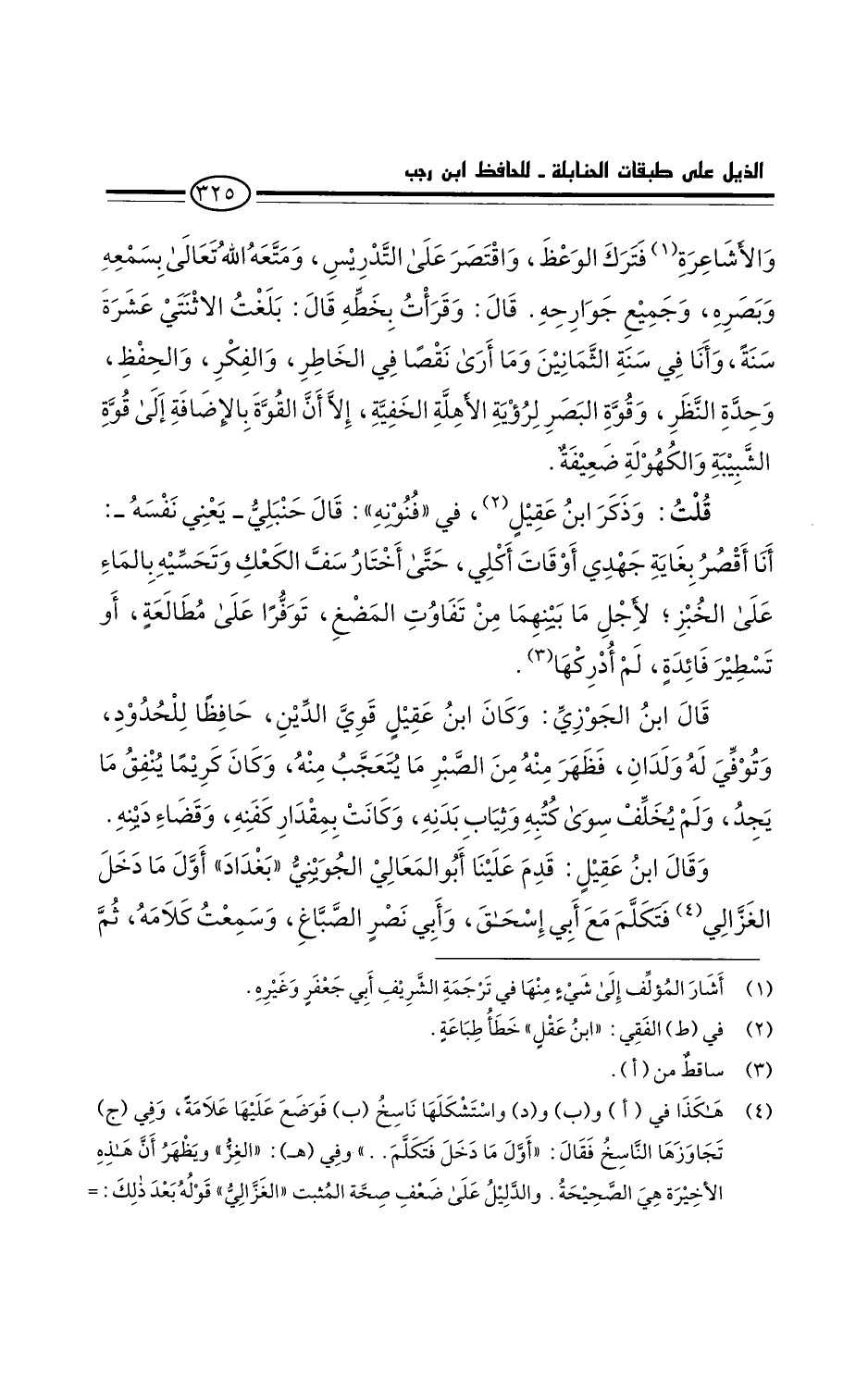 قلتُ: وذكر ابن عقل، في فنونه: قَالَ حنبلي - يعني نفسه -: أنا أقصرُ بغاية جهدي أوقات أكلي، حتى أختار سف الكعك وتحسيه بالماء على الخبزة لأجل ما بينهما من تفاوت المضغ، توفرا على مطالعة، أو تسطير فائدة، لم أدركها فيه.