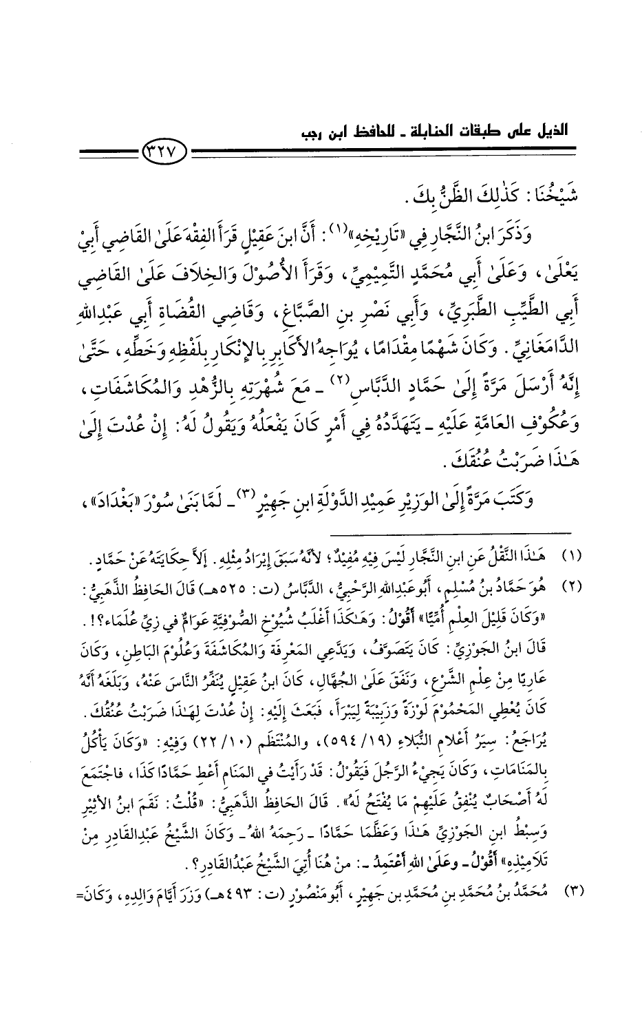 وكان شهما مقداما، يُواجه الأكابر بالإنكار بلفظه، وخطه، حتى إنه أرسل مرة إلى حماد الدباس، مع شهرته بالزهد والمكاشفات، وعكوف العامة عليه، يتهدده في أمر كان يفعله ويقول له: إن عدتَ إلى هذا ضربتُ عنقك.